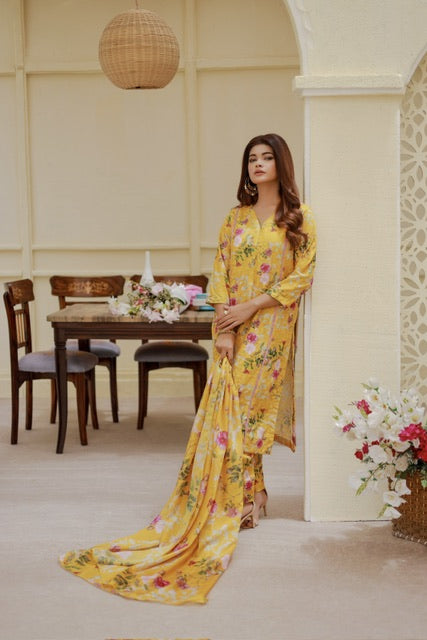 Chickankari shirt trouser with silk dupatta.