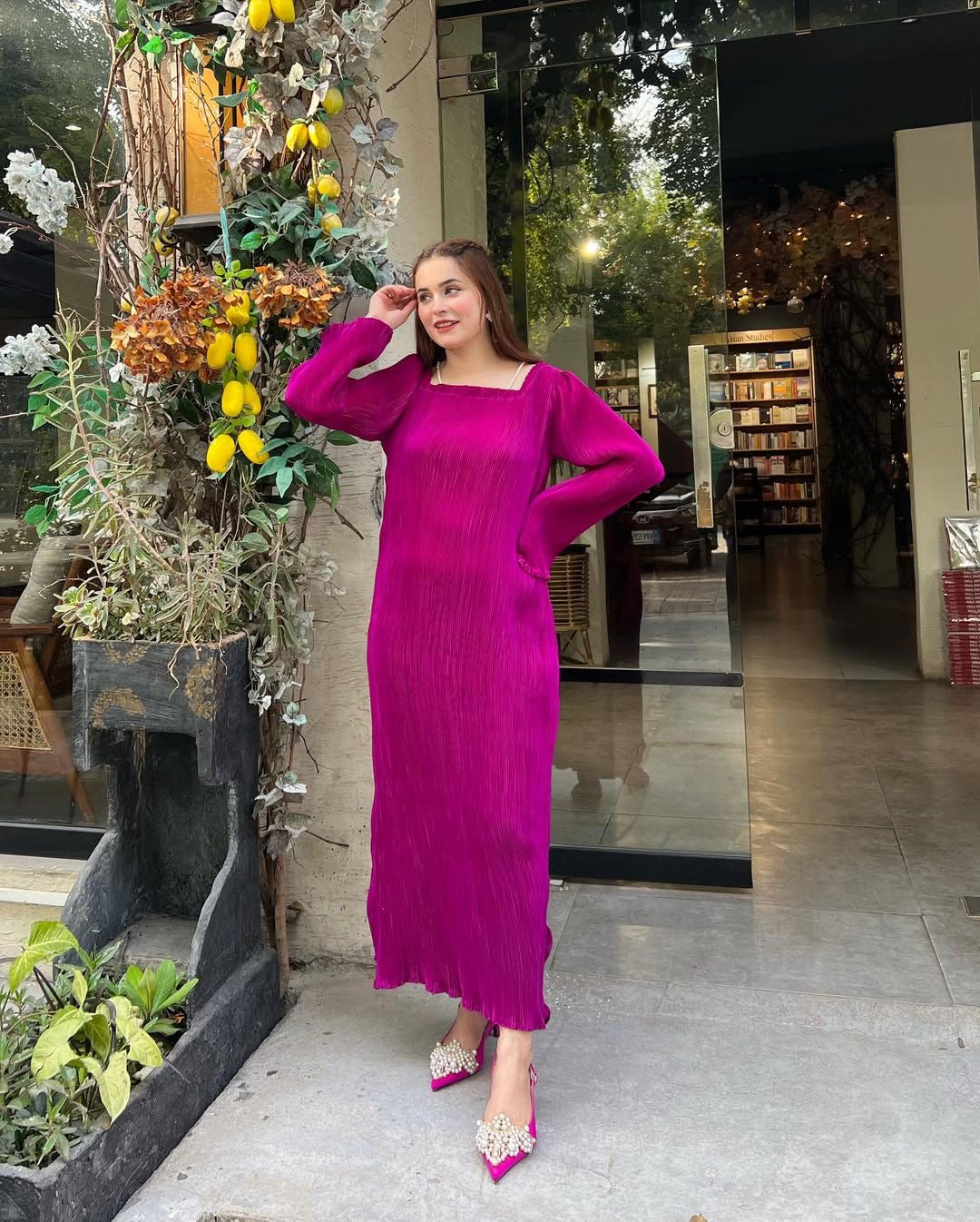 Zero pleated silk bodycon dress. Pearl beads on the neckline.