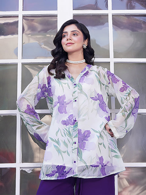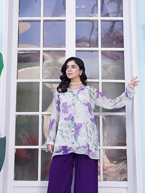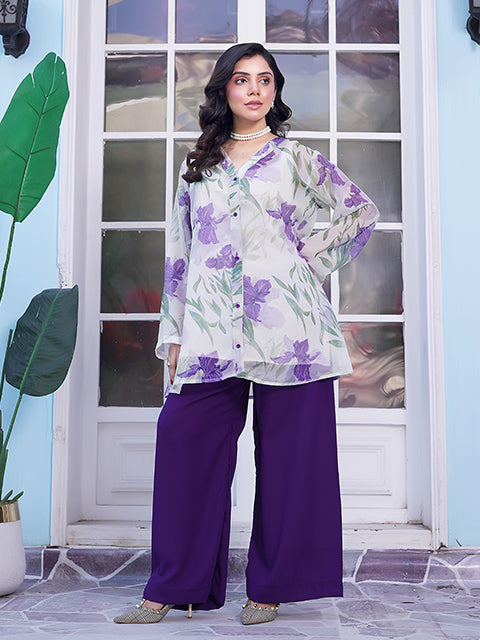 Introducing Zoè, a high-quality, printed chiffon co-ord set that exudes elegance and sophistication. The front buttons add a touch of effortless style to this must-have piece. Made with only the finest materials, this dress is perfect for any occasion. Elevate your wardrobe with Zoè.